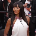Après sa somptueuse robe remplie de 21 600 cristaux et sa robe rouge très glamour, Naomi Campbell s’est présentée sur les marches vêtue d’une longue robe blanche soutenue par un col bijou venant de la maison Chanel.